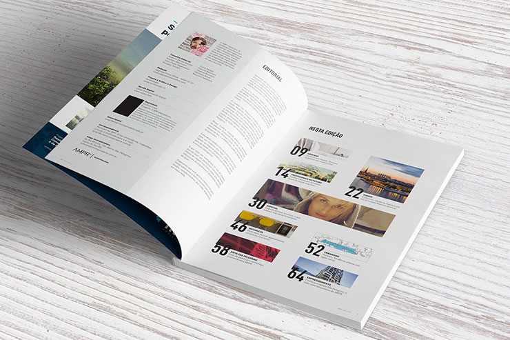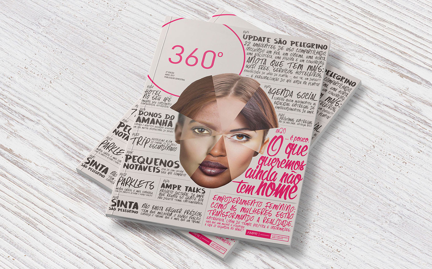 Gráfico Editorial produzido pela AMPR Incorporadora (Serra Gaúcha). A 360º foi uma publicação semestral, que além do conteúdo próprio da empresa, possuia editorias como Viagem, Negócios, Gastronomia e Econômia.