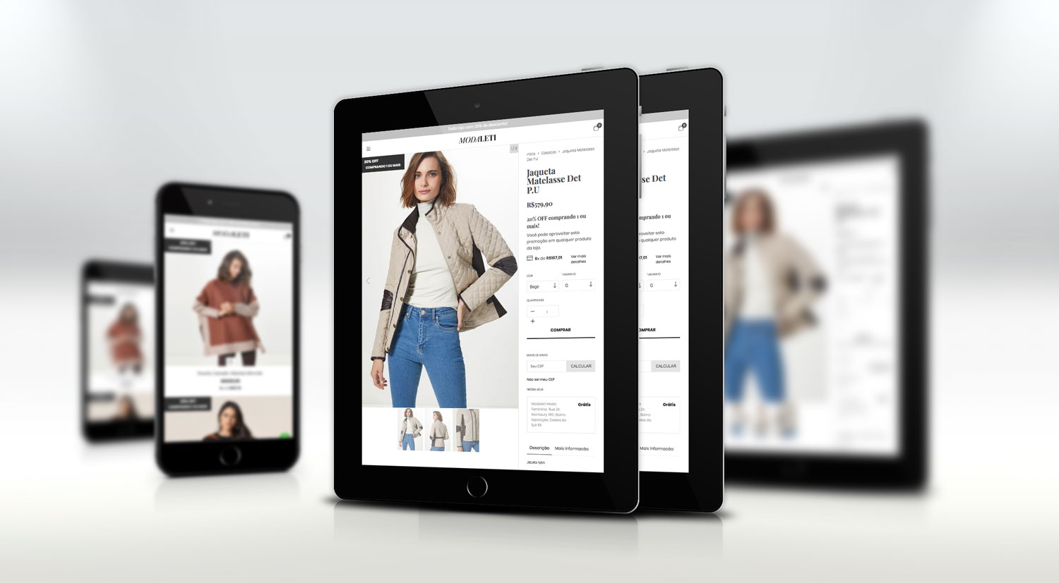 Para atualizar a marca e revigorar a imagem do negócio, aproximamos o visual da Modaleti à grandes marcas que orbitam o mundo fashion, como por exemplo a revista Vogue. Para a atualização não ser apenas cosmética, reinventamos o negócio com uma loja virtual rica em produtos, com design simples, atrativo e extremamente fácil de navegar.