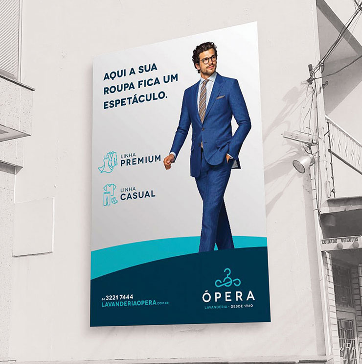 A criação da nova identidade de marca buscou referências no próprio nome da lavanderia: o símbolo é a mistura estilizada de uma clave de sol e um cabide de roupas; as cores utilizadas na composição da identidade fazem alusão à água; e a comunicação associa o nome espetáculo (uma das conotações de “ópera") à reconhecida qualidade dos serviços da lavanderia.